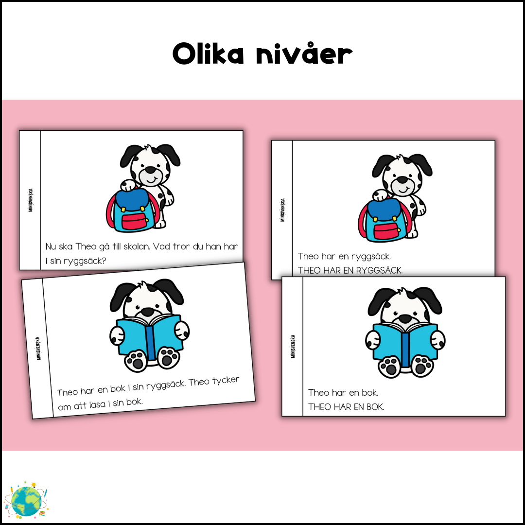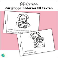 Materialet finns i A3 och A4. Du kan även låta eleverna färglägga bilderna till texterna.