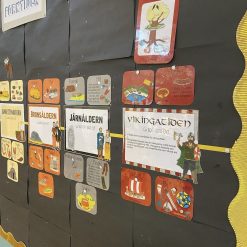 Tillhörande bilder till varje tidsperiod under rubrikerna mat, kläder, döden, vapen & redskap och boende. (Istiden har andra rubriker).