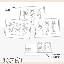 Pyssla klippdockor. Färglägg, klipp ut och lek i timmar. Komplettera med klädpaket och tillbehör efter säsong och intresse.