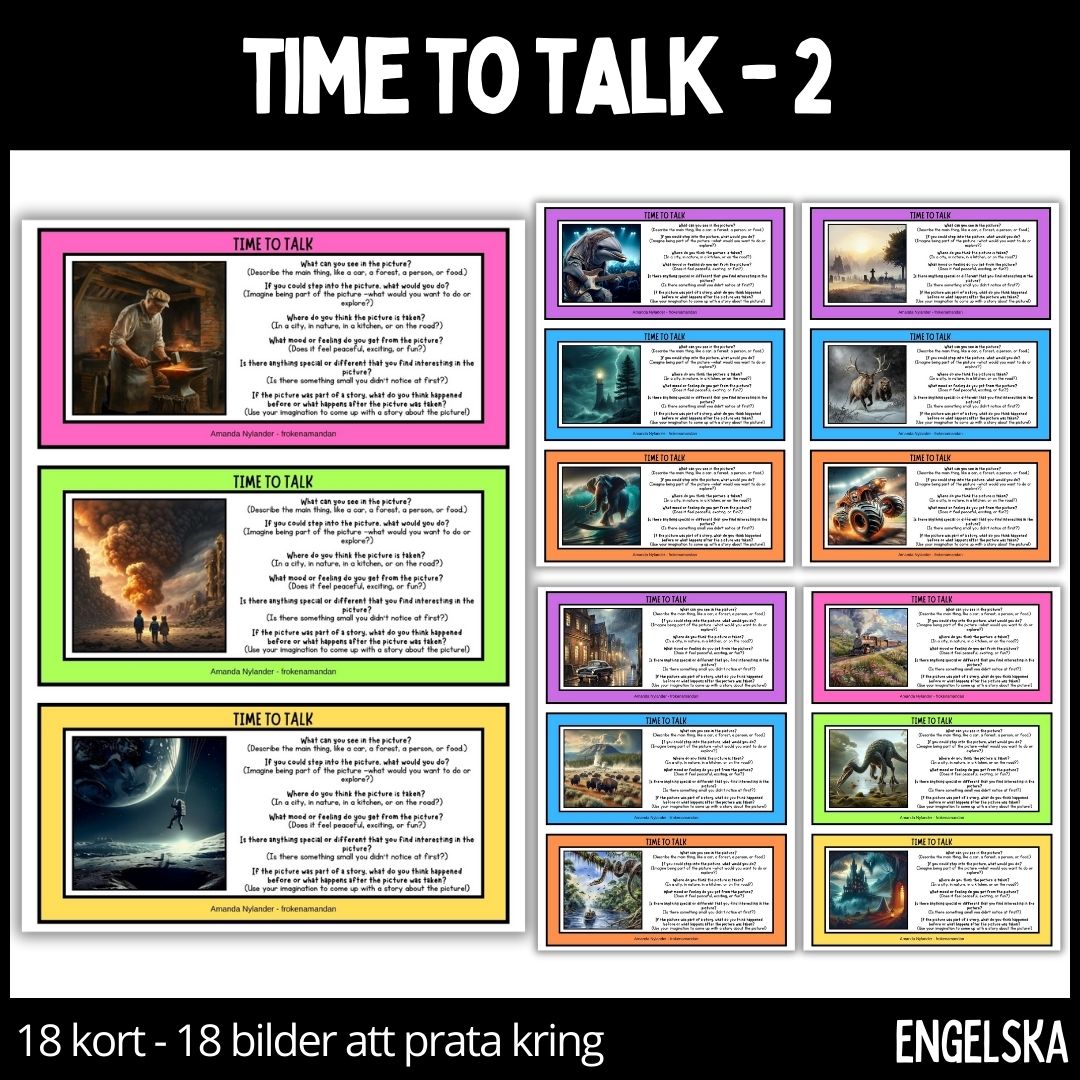 Detta ingår i Time to talk - 2 - 18 talkort - 18 illustrationer - stödstruktur