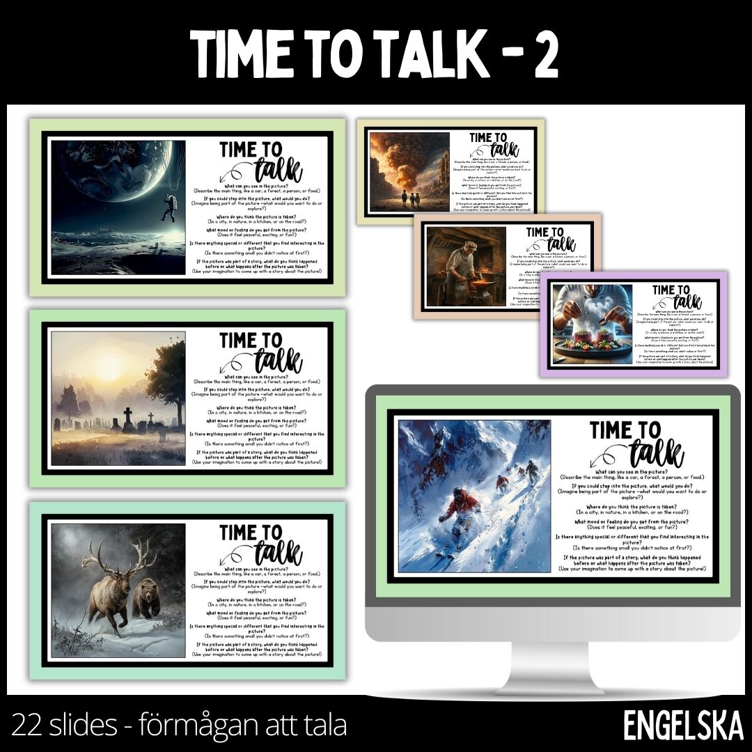 Detta ingår i Time to talk - 2 - presentation - 22 slides, 22 illustrationer & stödstruktur