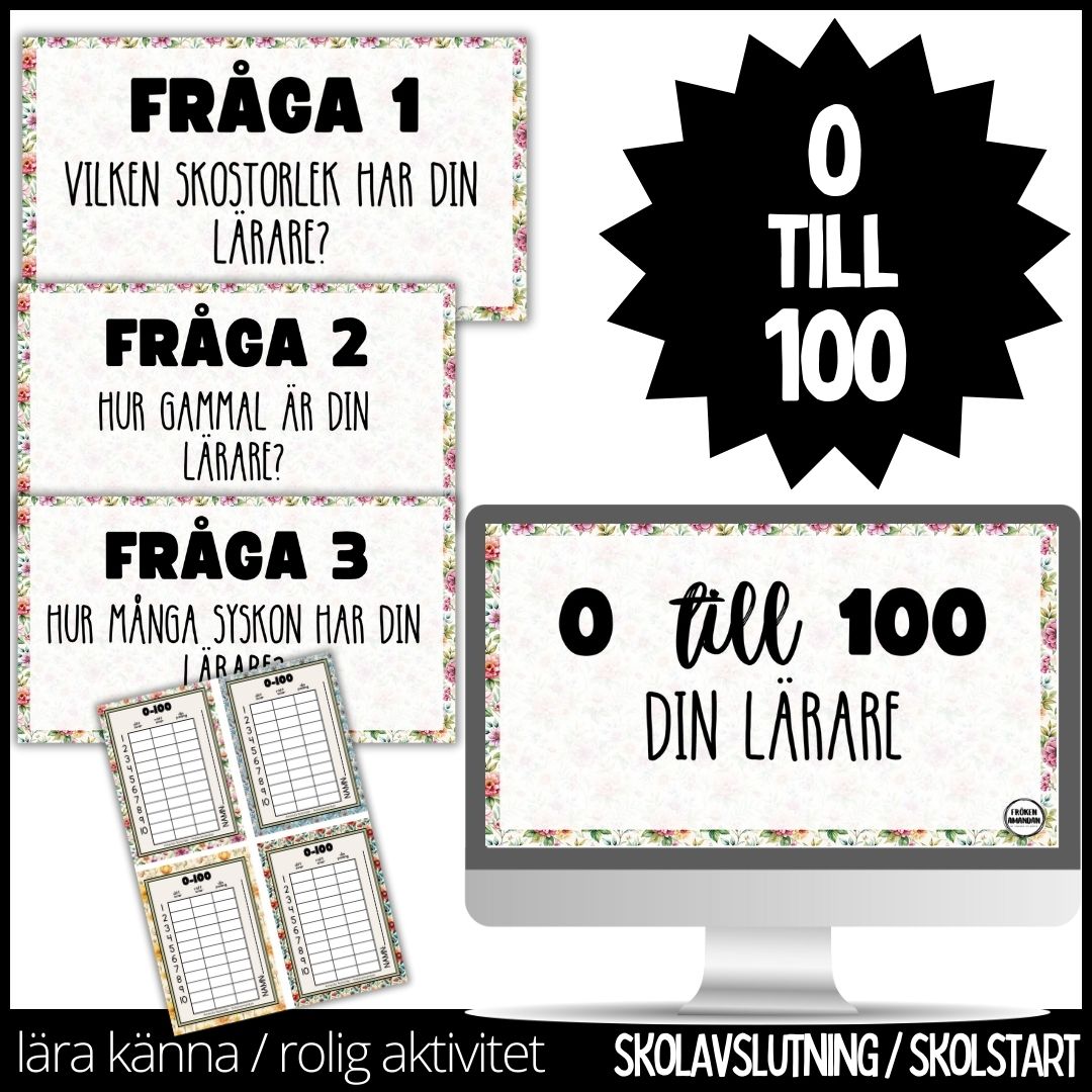 Låt eleverna sedan göra en egen 0-100 om sig själva där kompisarna och du får vara de som spelar.