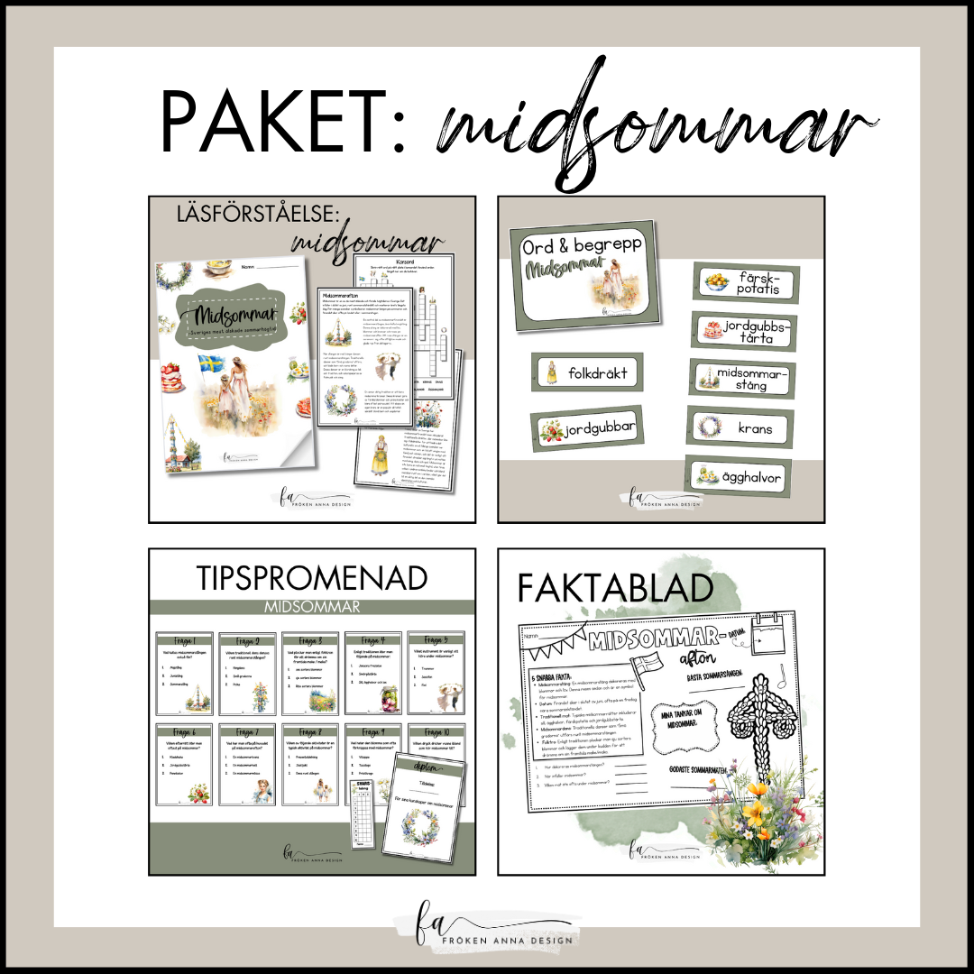 Ett paket med fyra material som passar att arbeta med i samband med midsommar: