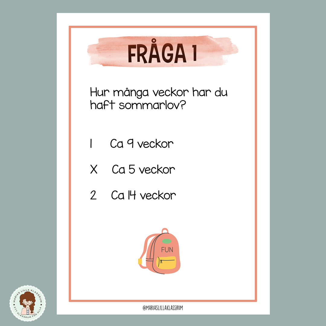 Tipspromenad tema skolstart med 10 frågor + svarstalonger.