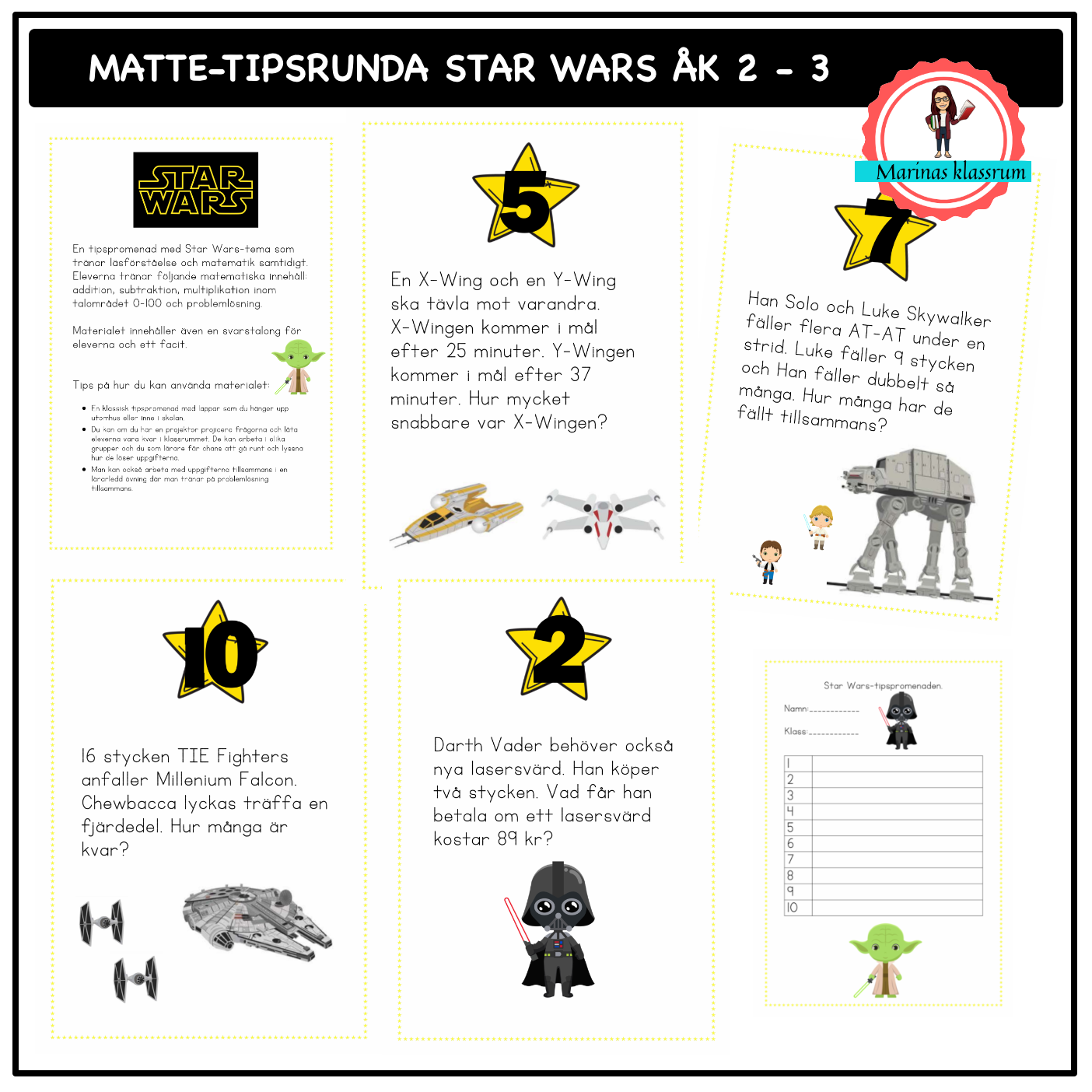 En tipspromenader som tränar både läsförståelse och problemlösning med ett Star Wars tema.