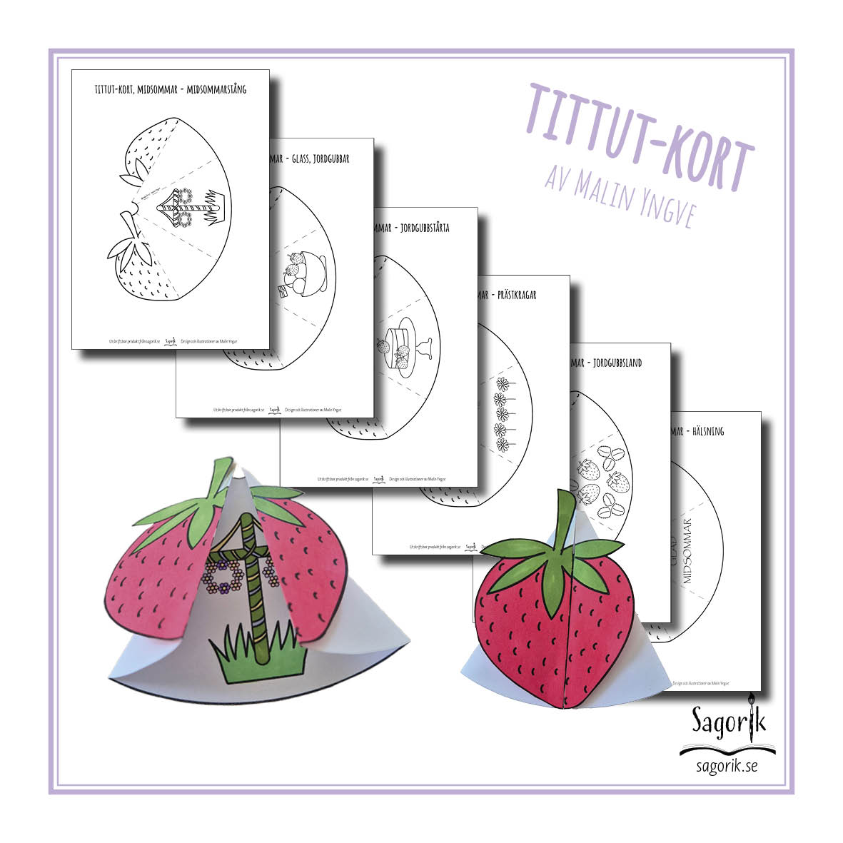 Tittut-kort Midsommar är ett roligt och annorlunda pyssel! Färglägg och klipp ut och vik, sedan har du ett kort med en hemlig bild inuti! Ett tittut-kort är ett kort där man får se ett hemligt motiv när man öppnar kortet. Säg tittut till bilden helt enkelt!
