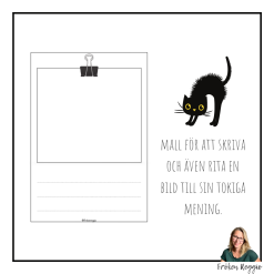 Slå tärningen och skriv orden till en mening eller varför inte en hel saga. Rita en bild som passar till. Använd gärna kopieringsunderlaget som följer med materialet.