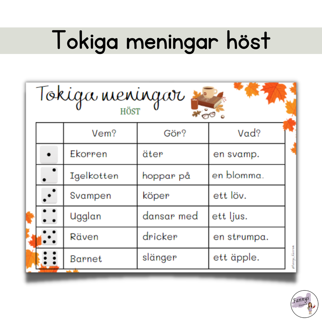 Slå en tärning och skriv tokiga meningar med tema hösten.