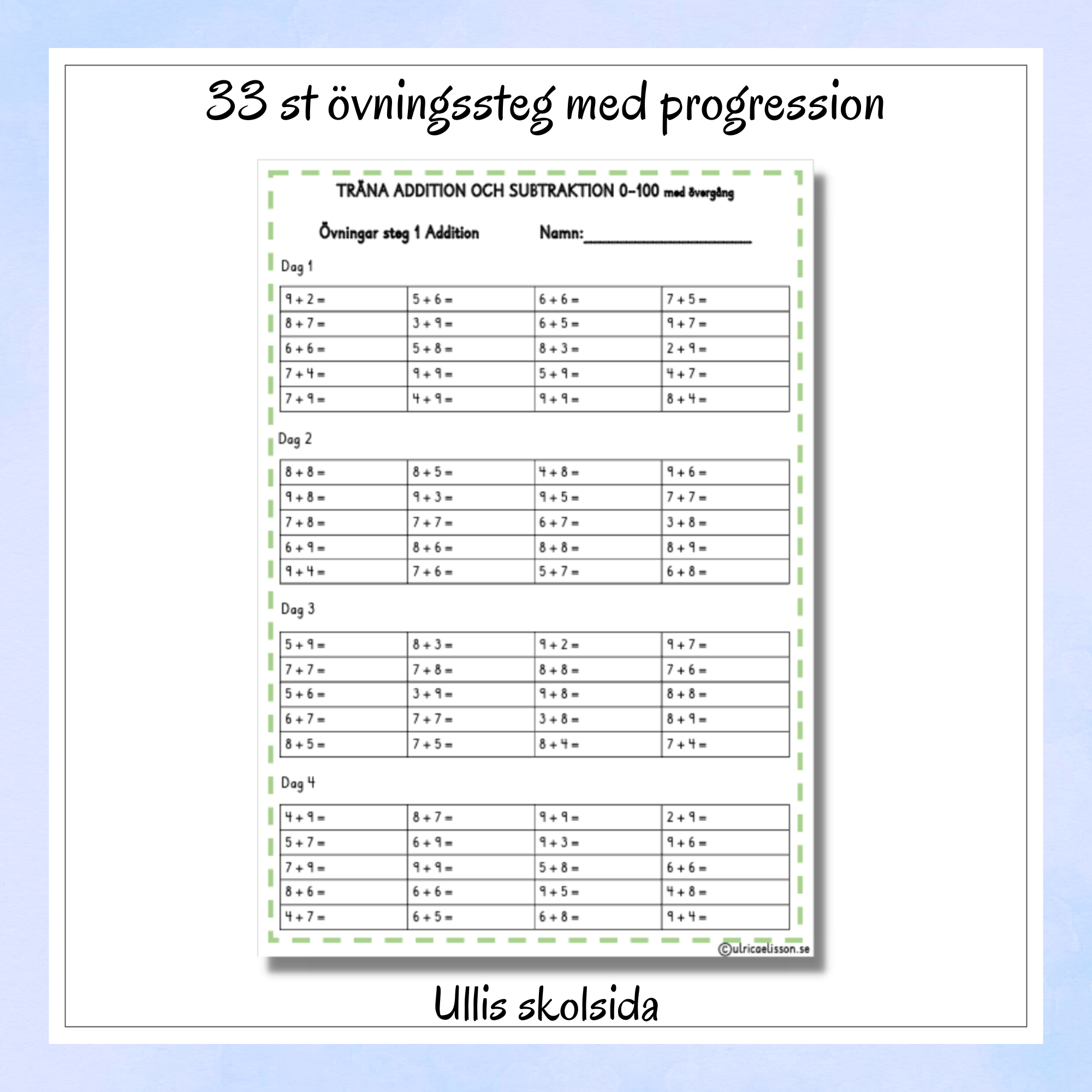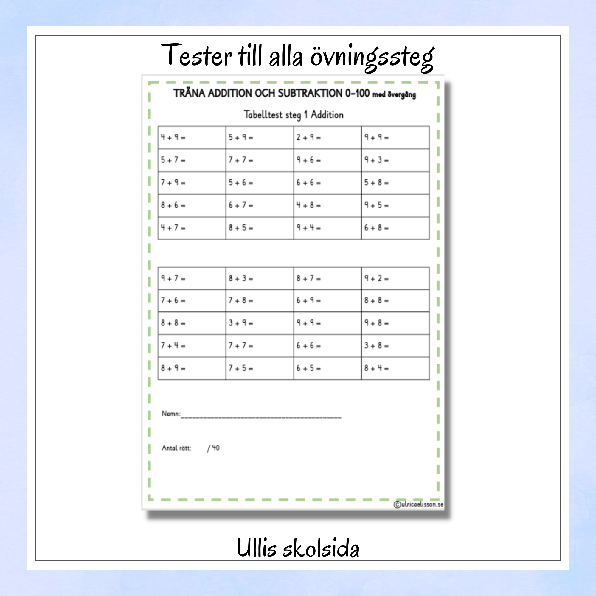 Addition och subtraktion 0 – 100 tvåsiffrigt tal +/- tvåsiffrigt tal