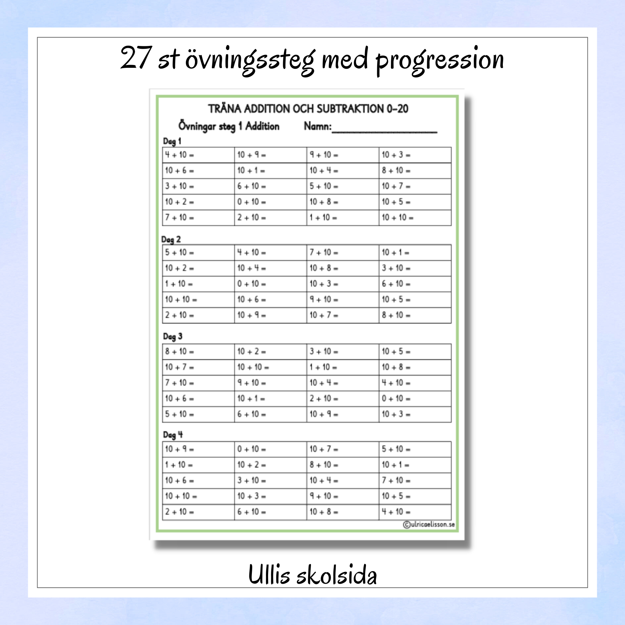 Detta material är tänkt som ett material för att automatisera huvudräkning med addition och subtraktion.