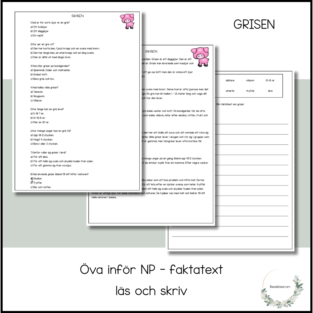 – läs faktatext om grisen och svara på läsförståelsefrågor med svarsalternativ
