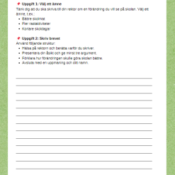 Eleverna får öva på att skriva en argumenterande text i form av ett brev, där de argumenterar för en förändring på skolan.
