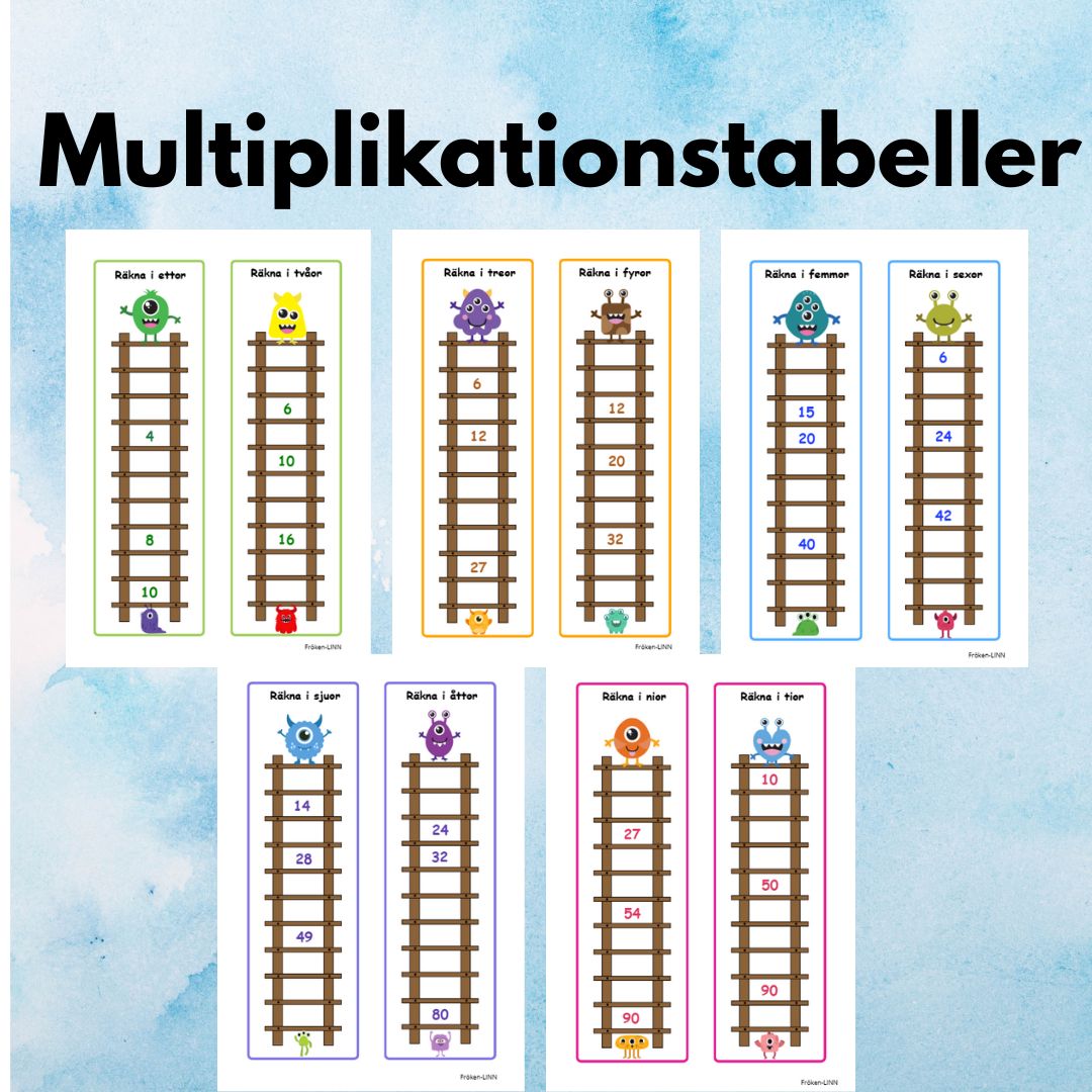 En serie övningar där eleverna tränar på att hoppa-räkna i steg från 1 till 10. Uppgifterna hjälper eleverna att upptäcka talmönster, utveckla sin taluppfattning och bli säkrare på multiplikationstabellerna.