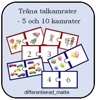 Träna antalsuppfattning och talkamraterna 5 och 10. Para ihop bilderna som tillsammans blir summan av talkamraten. Bilderna paras ihop med samma sorts bild, tex bil paras ihop med bil, blomma med blomma osv