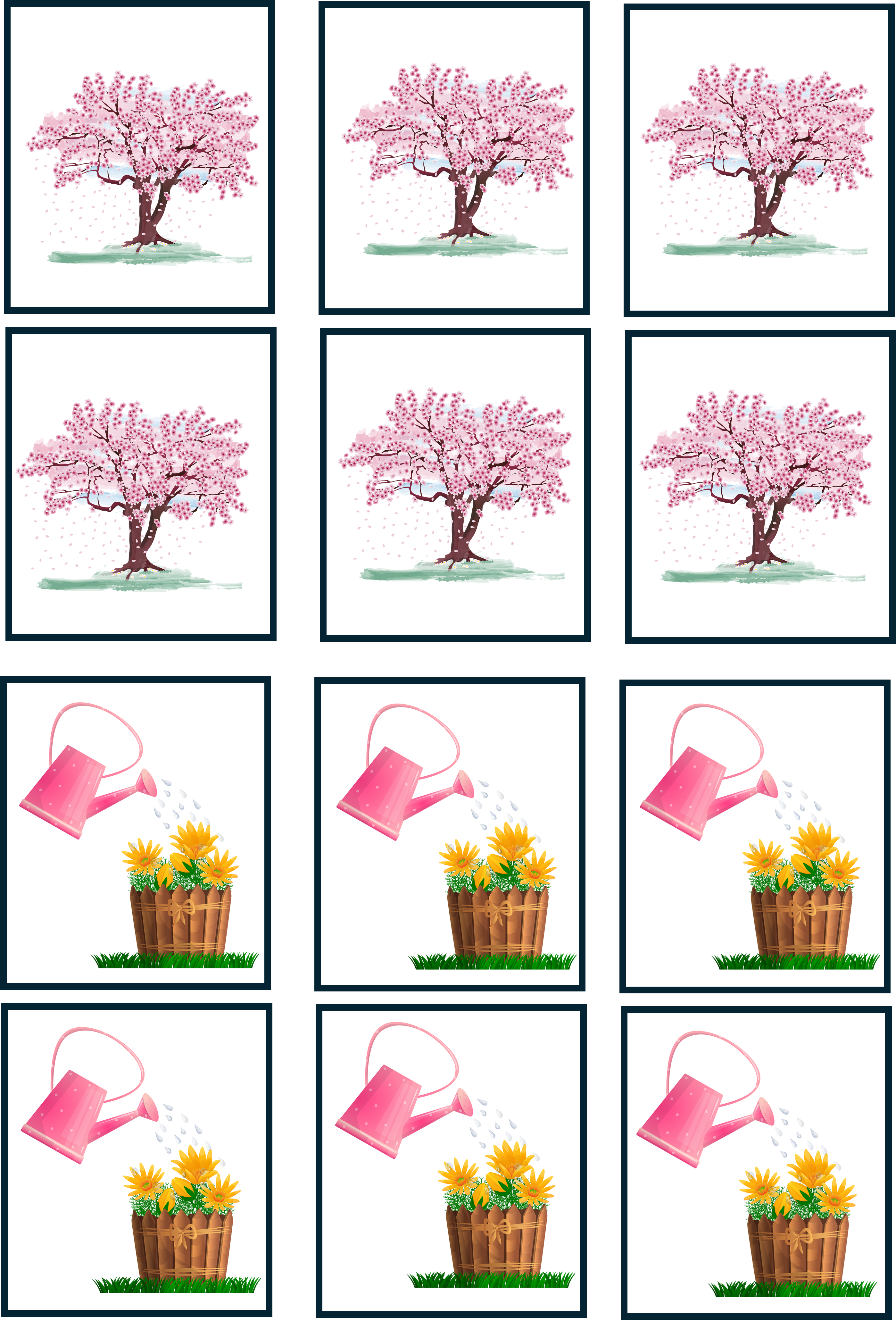 Materialet innehåller 4 brickor och 6 olika kort att använda med 6 kort i varje, allt som allt 36 kort.