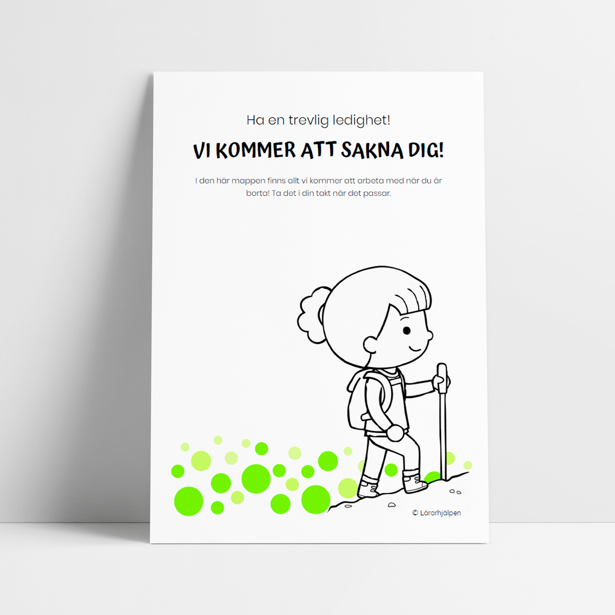 Använd dokumentet som försättsblad när du ger en elev som har en planerad ledighet sitt missade arbetsmaterial. Det är alltid trevligt att känna sig saknad och tänkt på när man är borta. Inkluderar en version i färg och en svartvit.