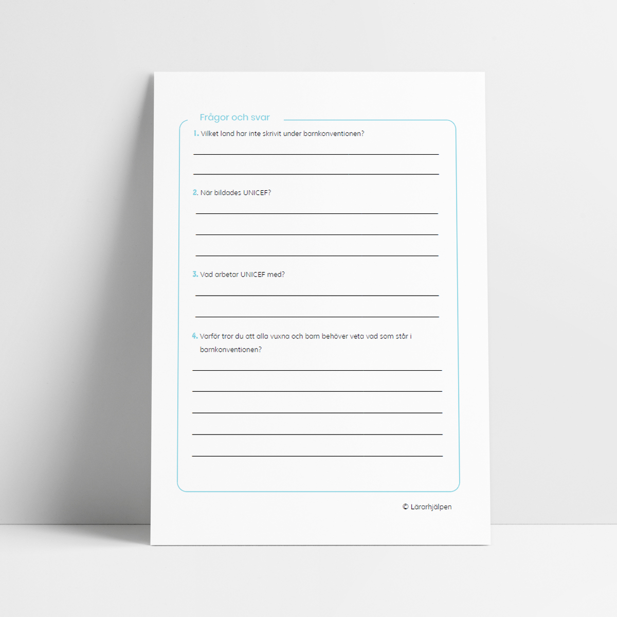 En text om UNICEF och barnkonventionen med tillhörande läsförståelsefrågor. Perfekt att använda i samband med FN-dagen.