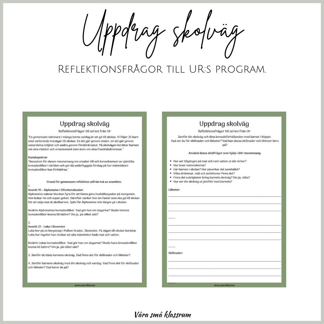 Reflektionsfrågor till UR:s program ”Uppdrag skolväg”.