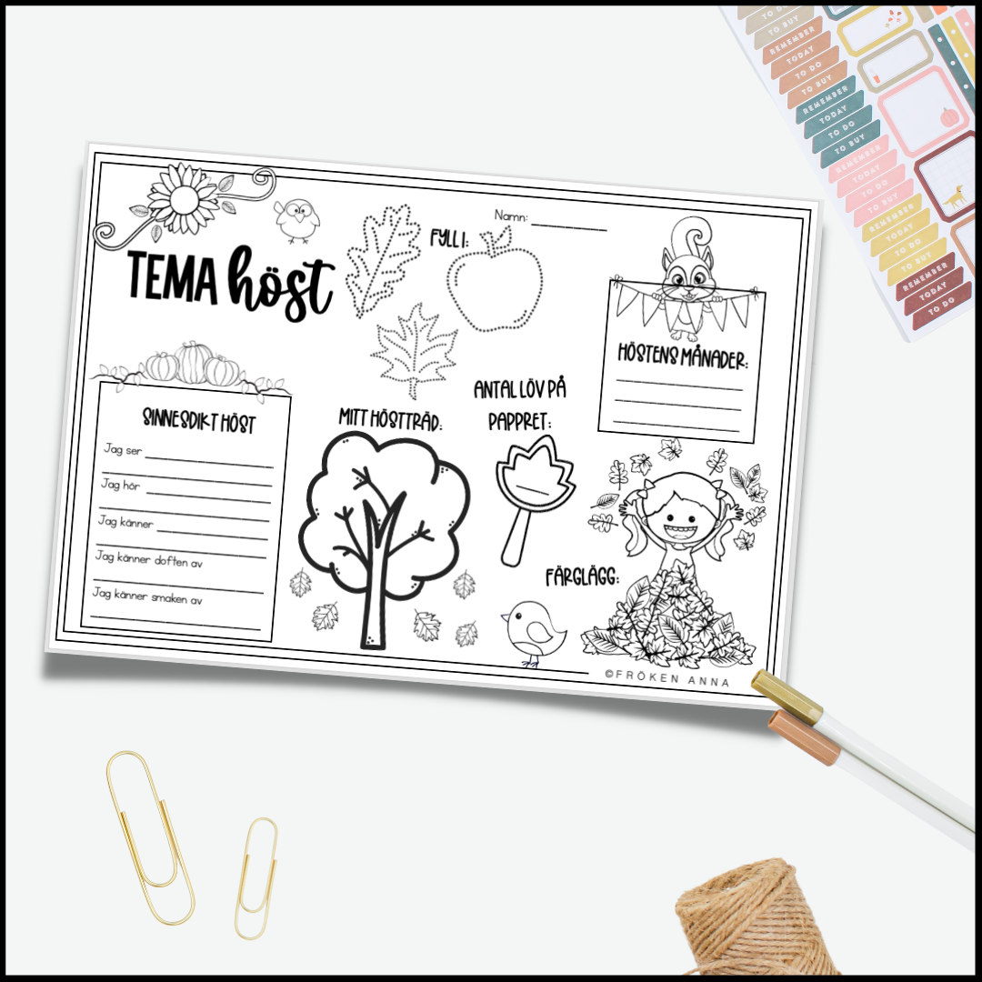Kreativt arbetsblad med hösttema att börja en morgon med t.ex. Skriv med fördel ut i A3.