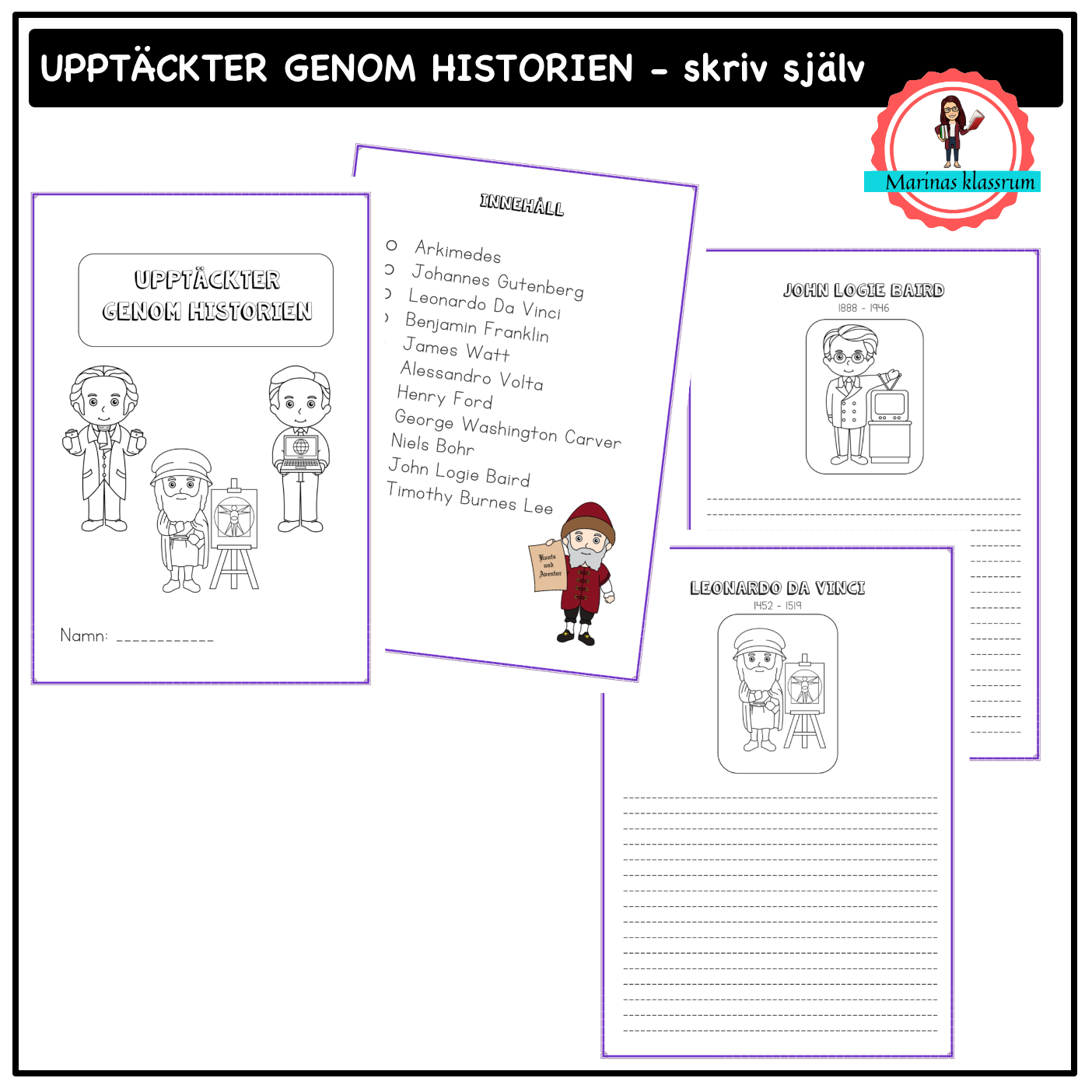 Arbetsblad för eleverna att skriva och berätta om 11 viktiga upptäckter genom historien.