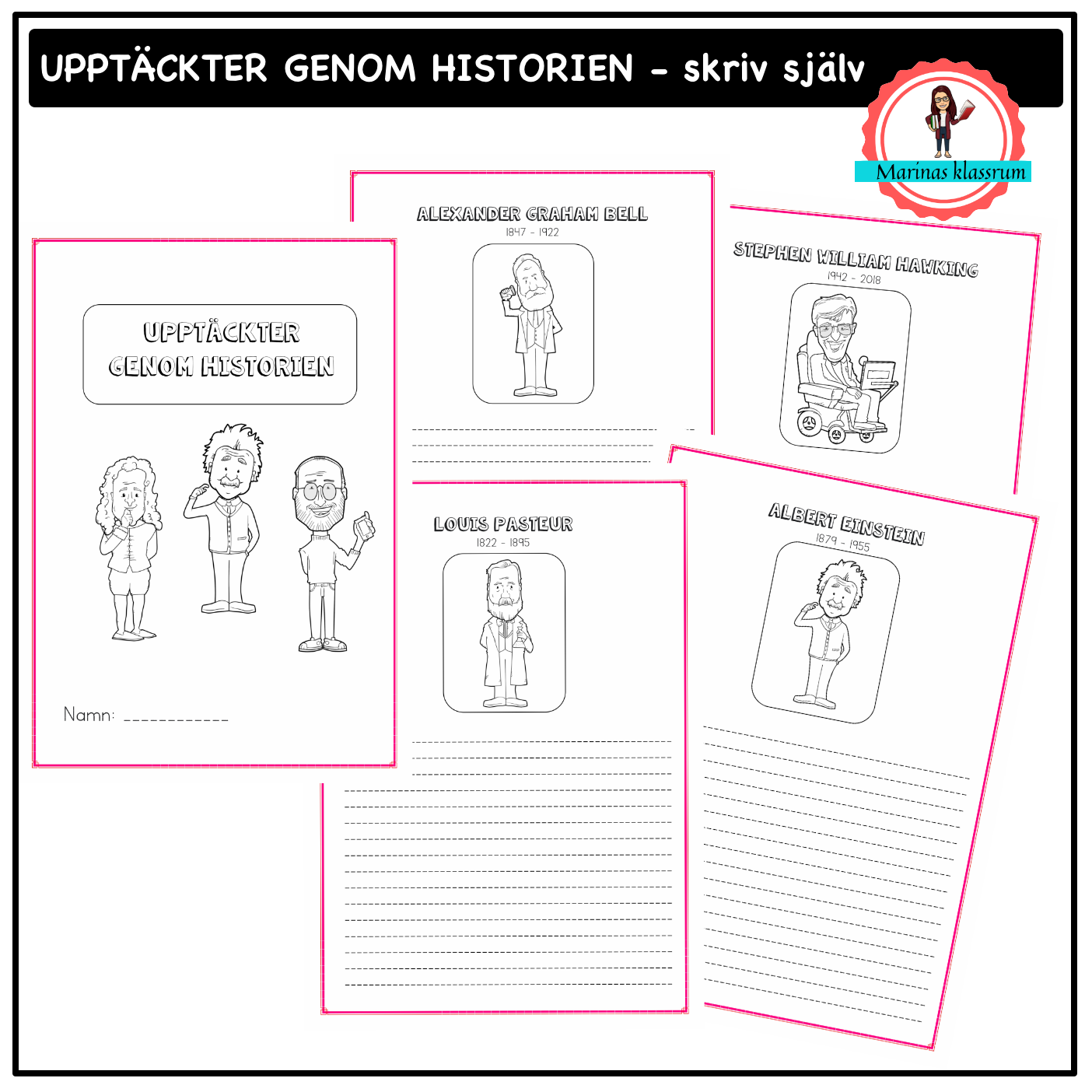 Arbetsblad för eleverna att skriva och berätta om 20 viktiga upptäckter genom historien.