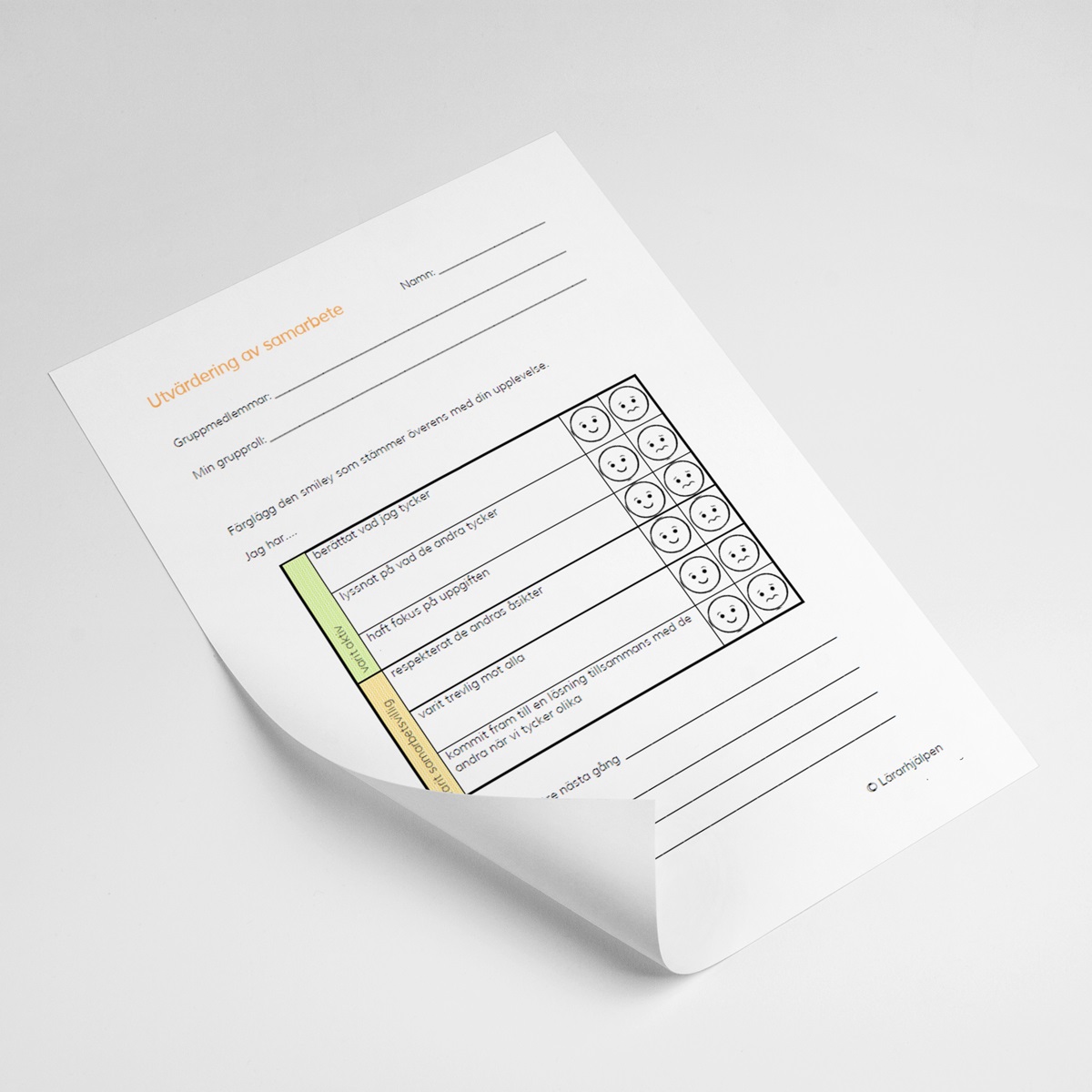 Ett dokument för att använda vid utvärdering av samarbete.
