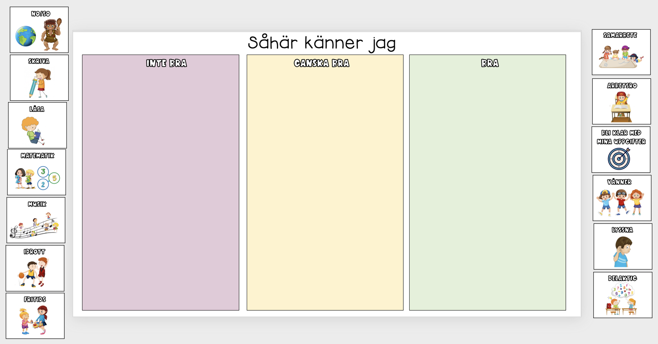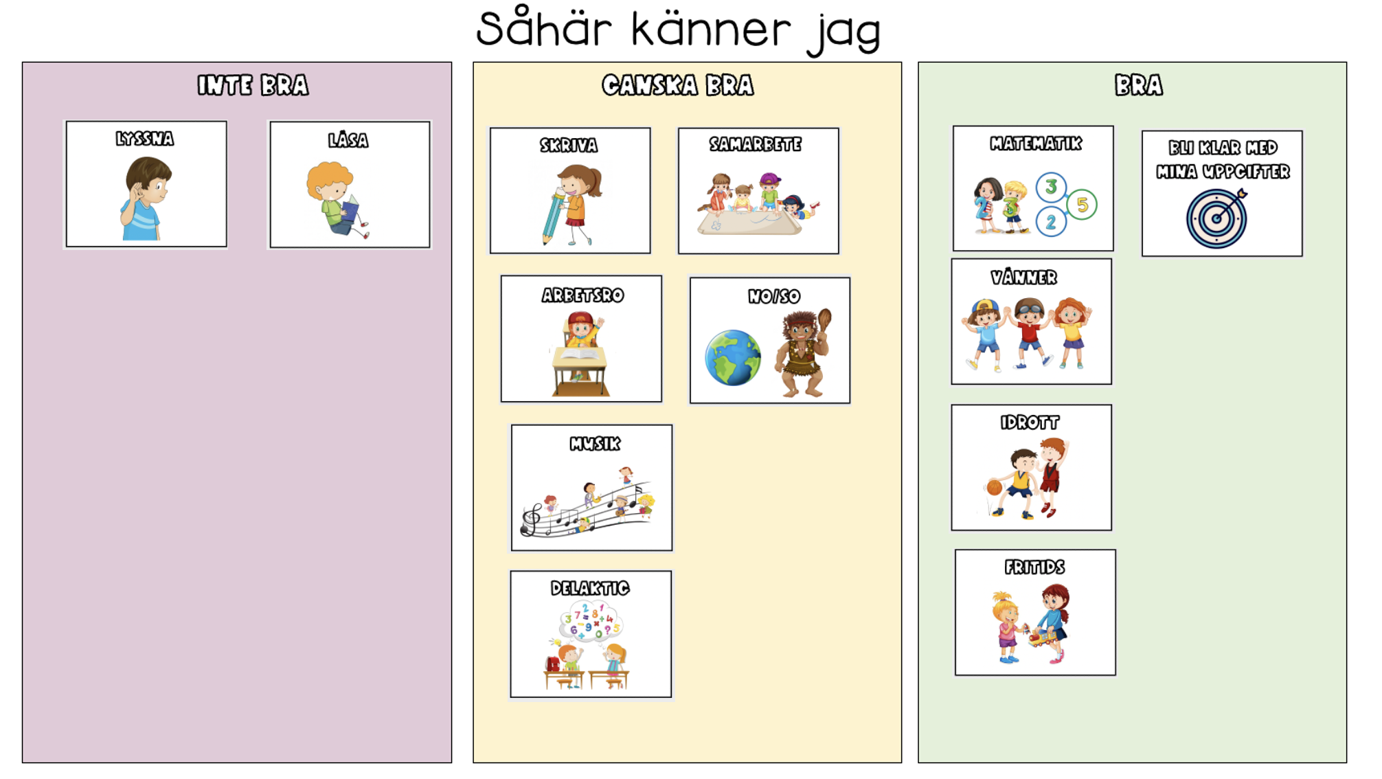 – såhär känner jag (eleven drar bilder till hur hen känner)