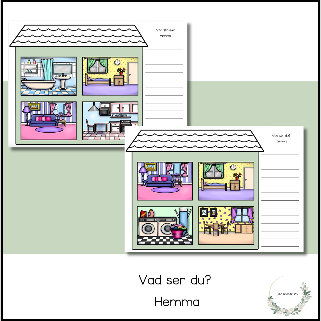 Låt eleverna träna ordkunskap genom att skriva ner ord på saker som de kan se på bilder från ett hem.