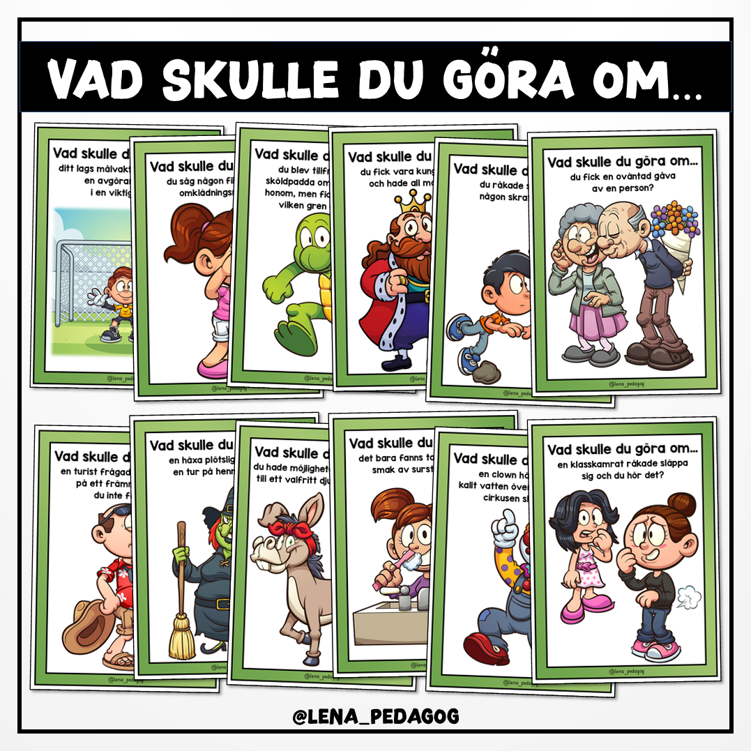 100 kort med olika dilemman ur fantasin och verkligheten. Korten är inte numrerade, utan kan användas enskilt som underlag för diskussioner eller skrivuppgifter m.m.