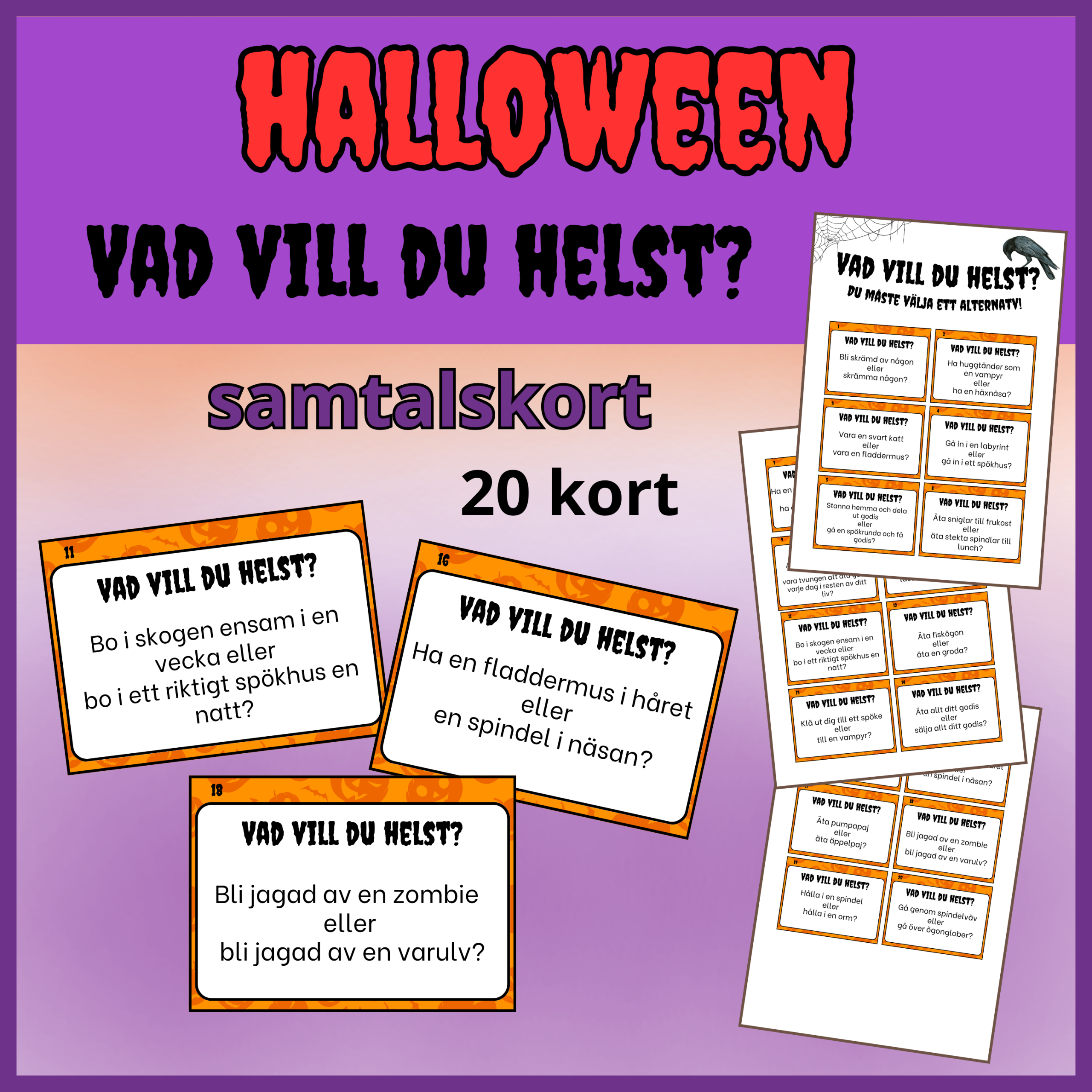 Vad vill du helst? – 20 frågekort med tema halloween – samtalsövning