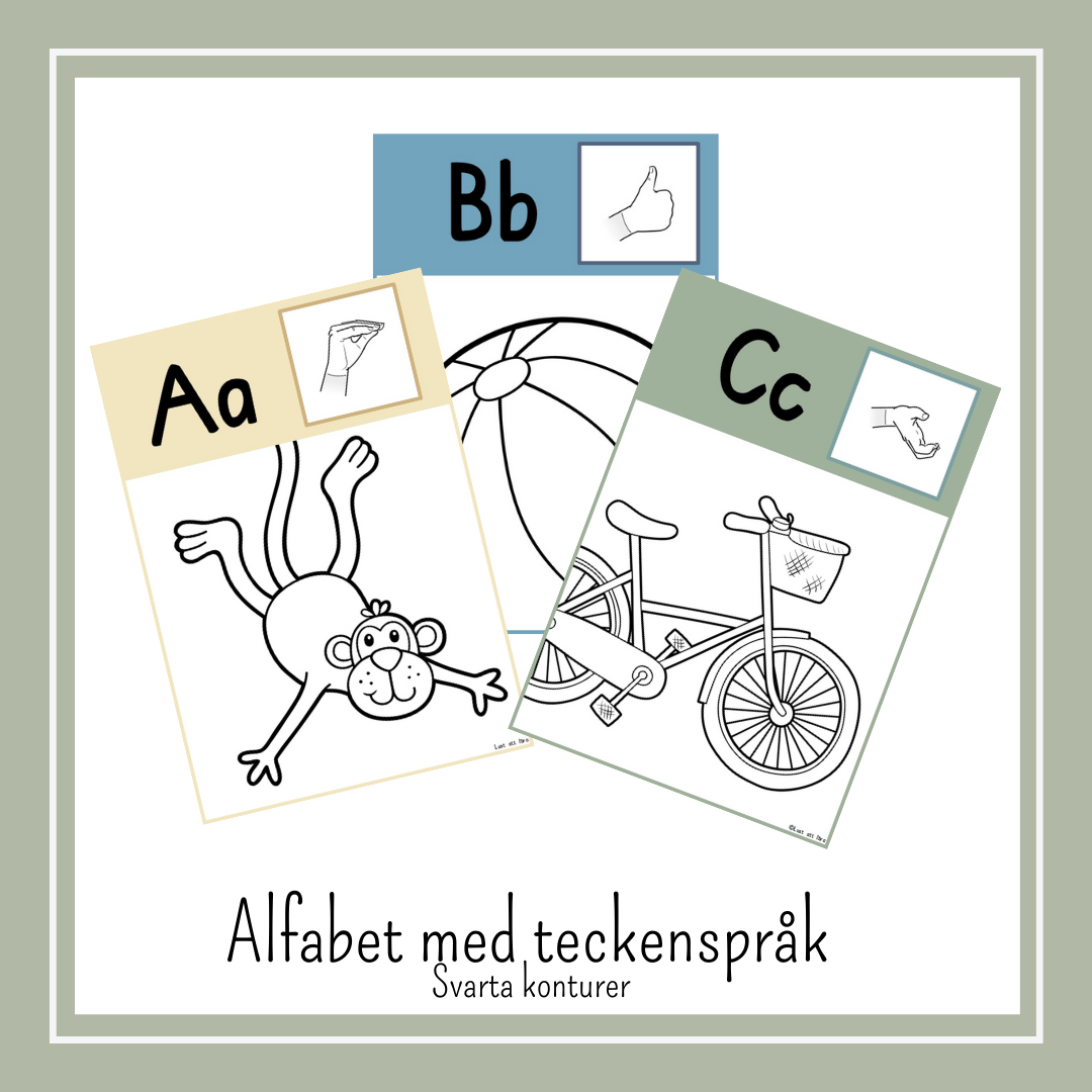 * Färgad ram och bilder och svarta konturbilder med teckenspråk.