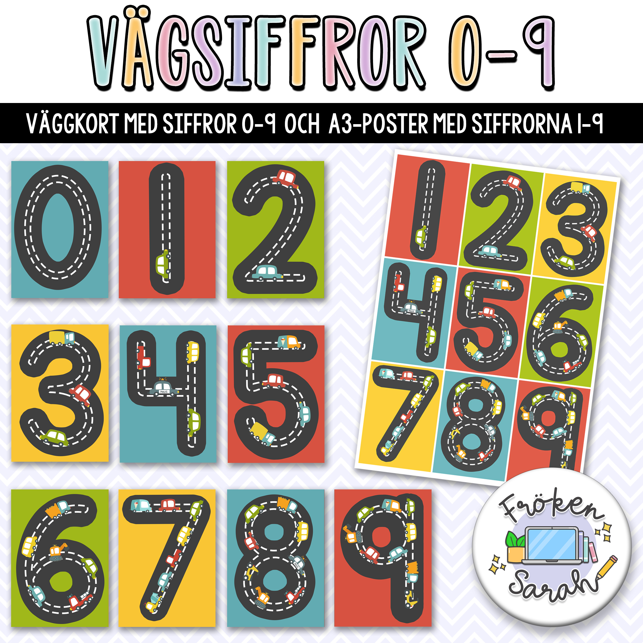 - A3-poster (PDF) med siffror 1-9 (alla siffror är alltså med på en och samma poster på denna)
