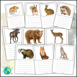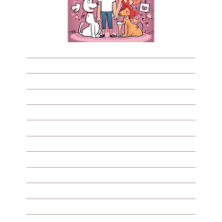 40 sidor med bilder att färglägga och linjer att skriva meningar på.