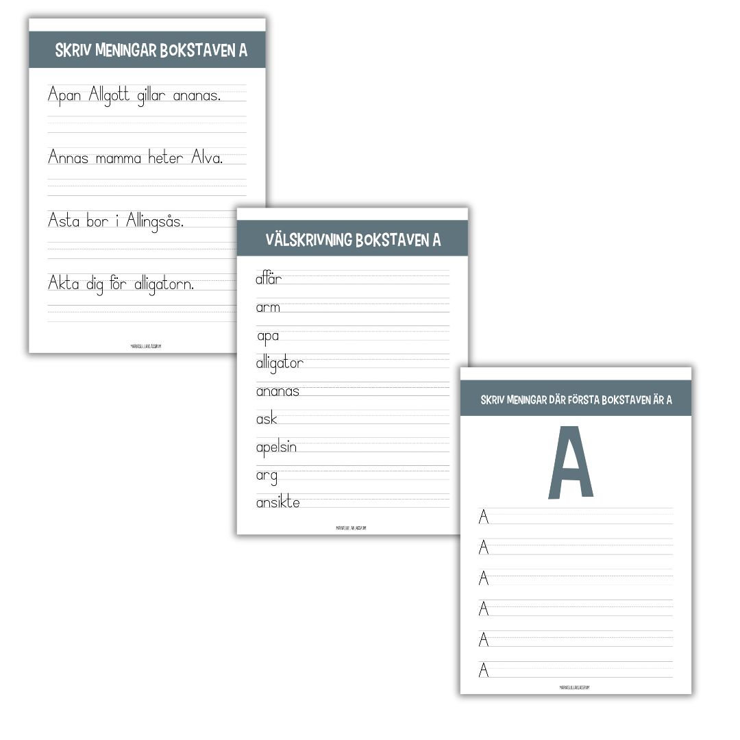 Stencil 1: Skriv av meningar – Bokstaven A