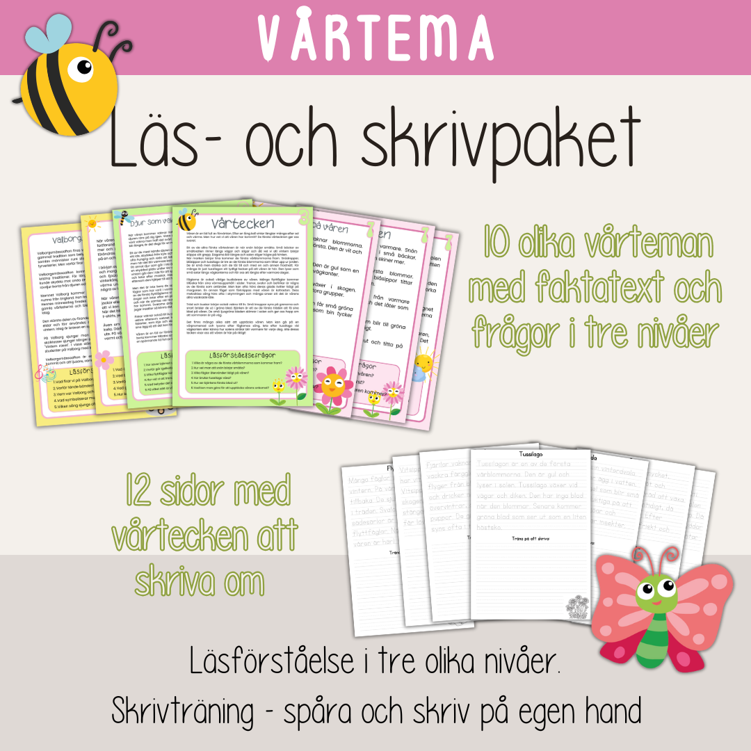 Undervisa om våren med detta Läs- och skrivpaket som innehåller läsförståelse med frågor samt skrivträning.