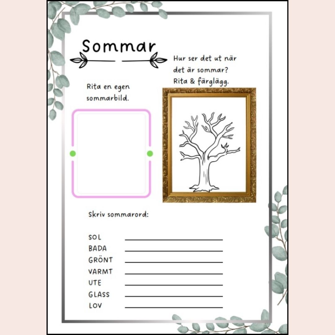 Årstidshäfte med varierade uppgifter inom svenska, matte & bild.