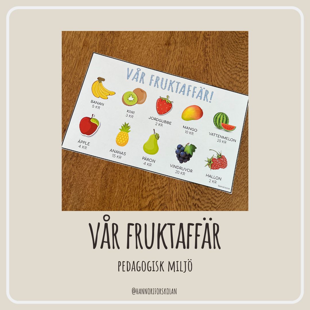 Våran fruktaffär – sätt upp i den pedagogiska miljön för att skapa en fin rollek. Skylten kan användas både inne och utomhus.