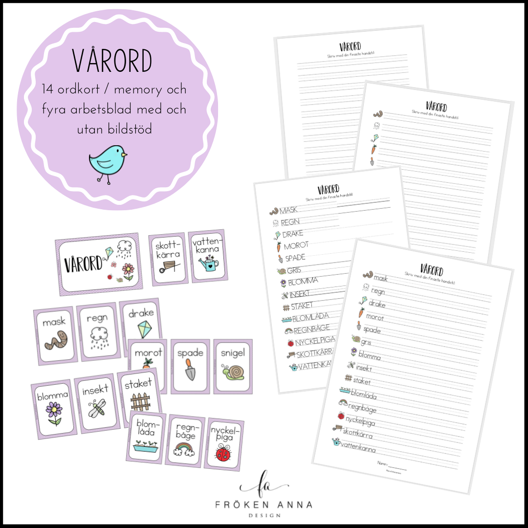 - 14 ordkort med bild och ord som även kan användas som memory om ni skriver ut dubbletter.