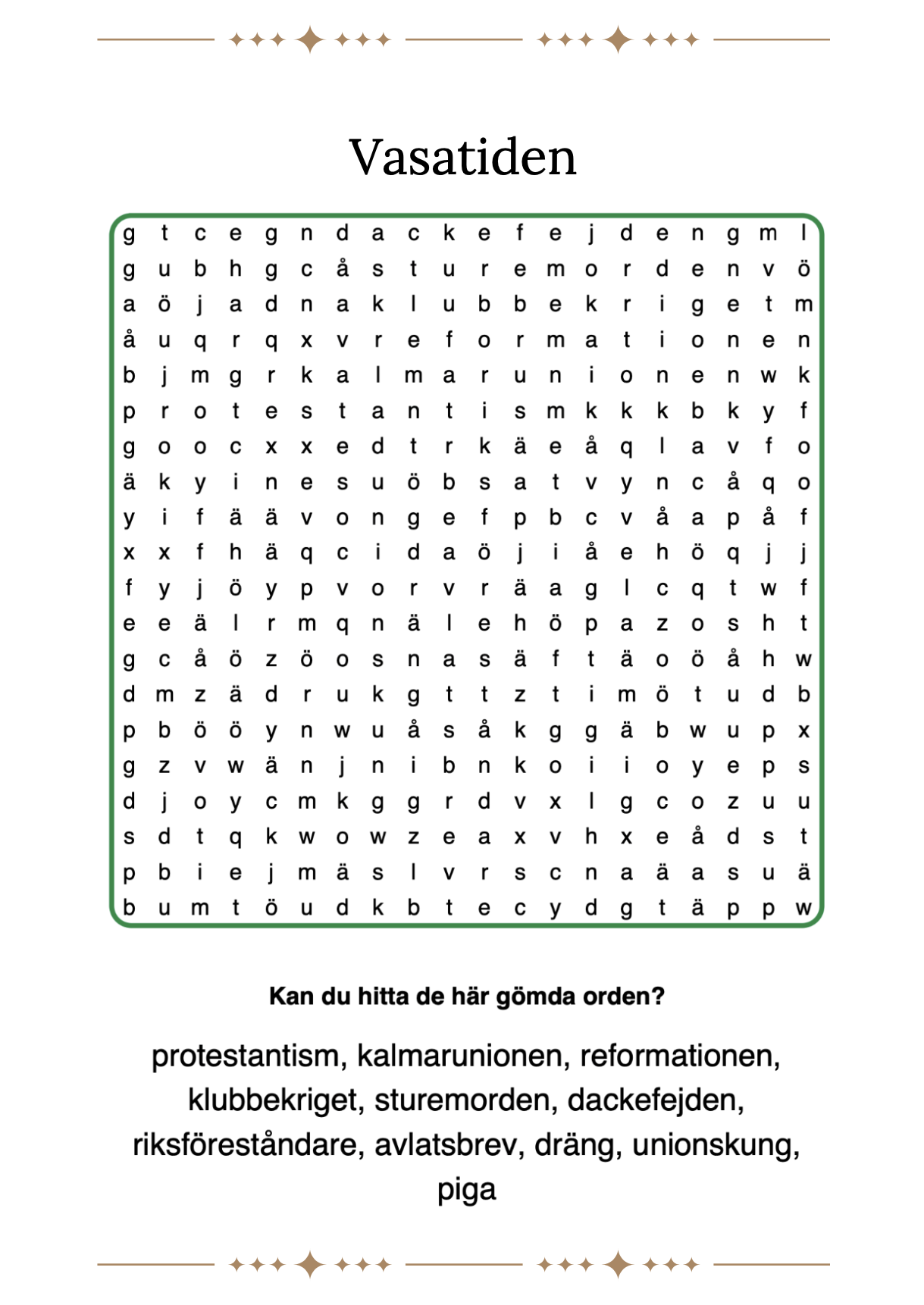 Ett häfte om Vasatiden som passar bra till mellanstadiet. Häftet innehåller: