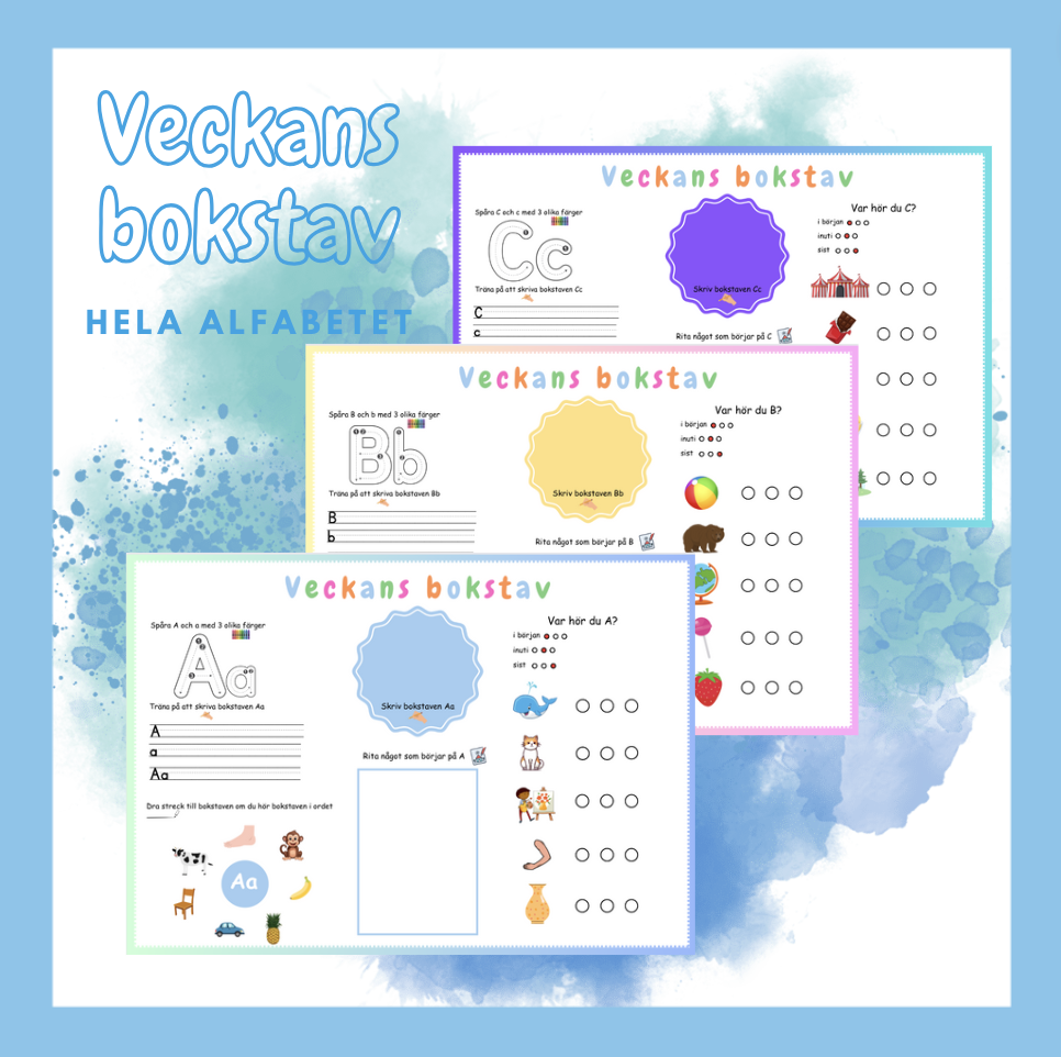 Veckans bokstav – bokstavsblad där eleverna får träna på: