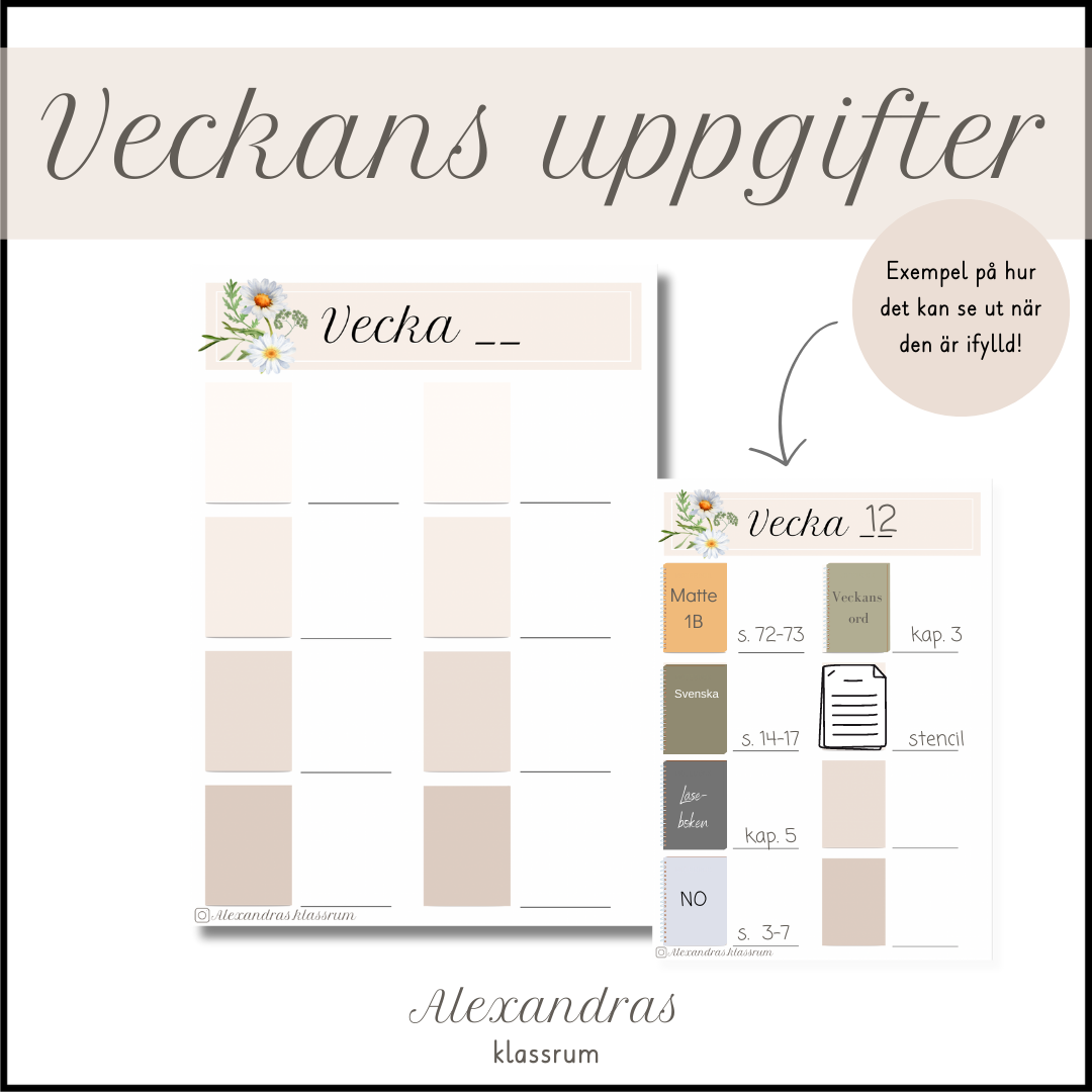 3. Skriv ut några stycken och ha lättillgängligt så kan du även enkelt skicka med veckans uppgifter hem vid behov.