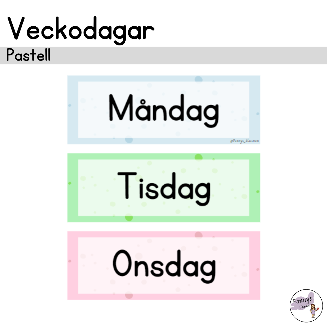Skyltar med veckodagarna. Ingår i mitt klassrumspaket med pastelltema.