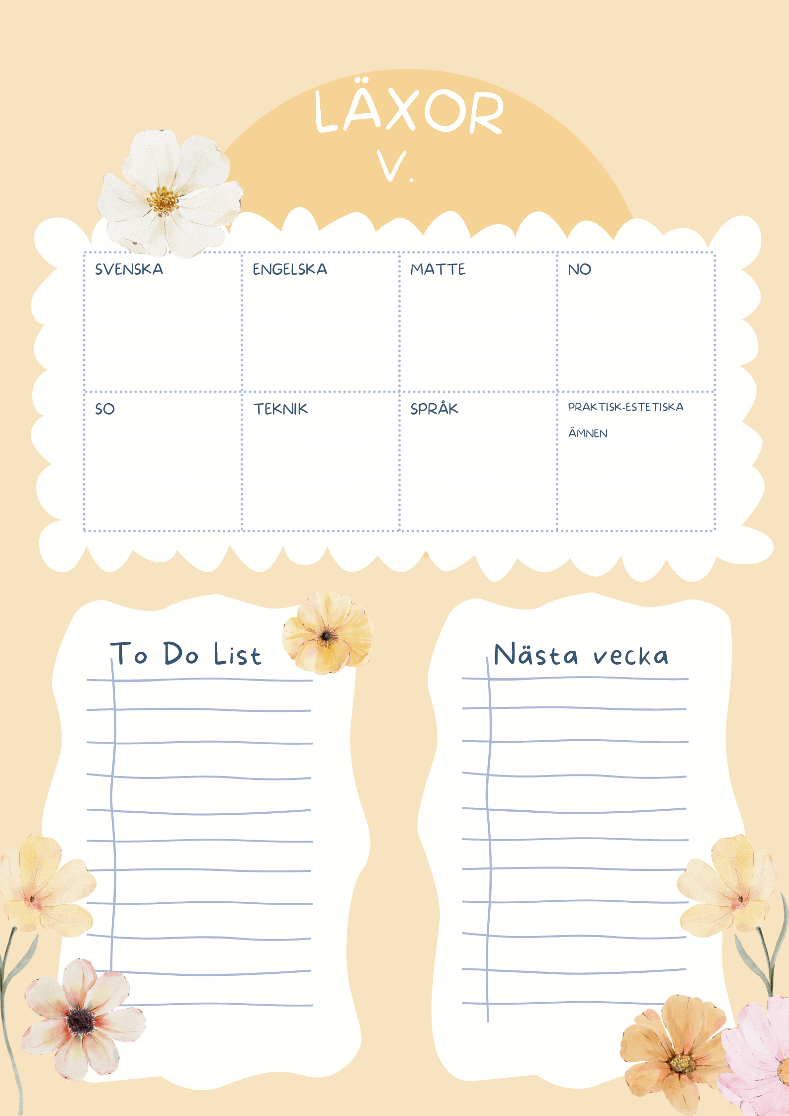 Detta veckoschema är en praktisk verktyg för att organisera veckans aktiviteter och uppgifter. Bäst är att laminera så kan du enkelt skriva med whiteboard pennor och sedan sudda ut. Detta gör att kan du snabbt anpassa och uppdatera schemat efter behov och vecka.