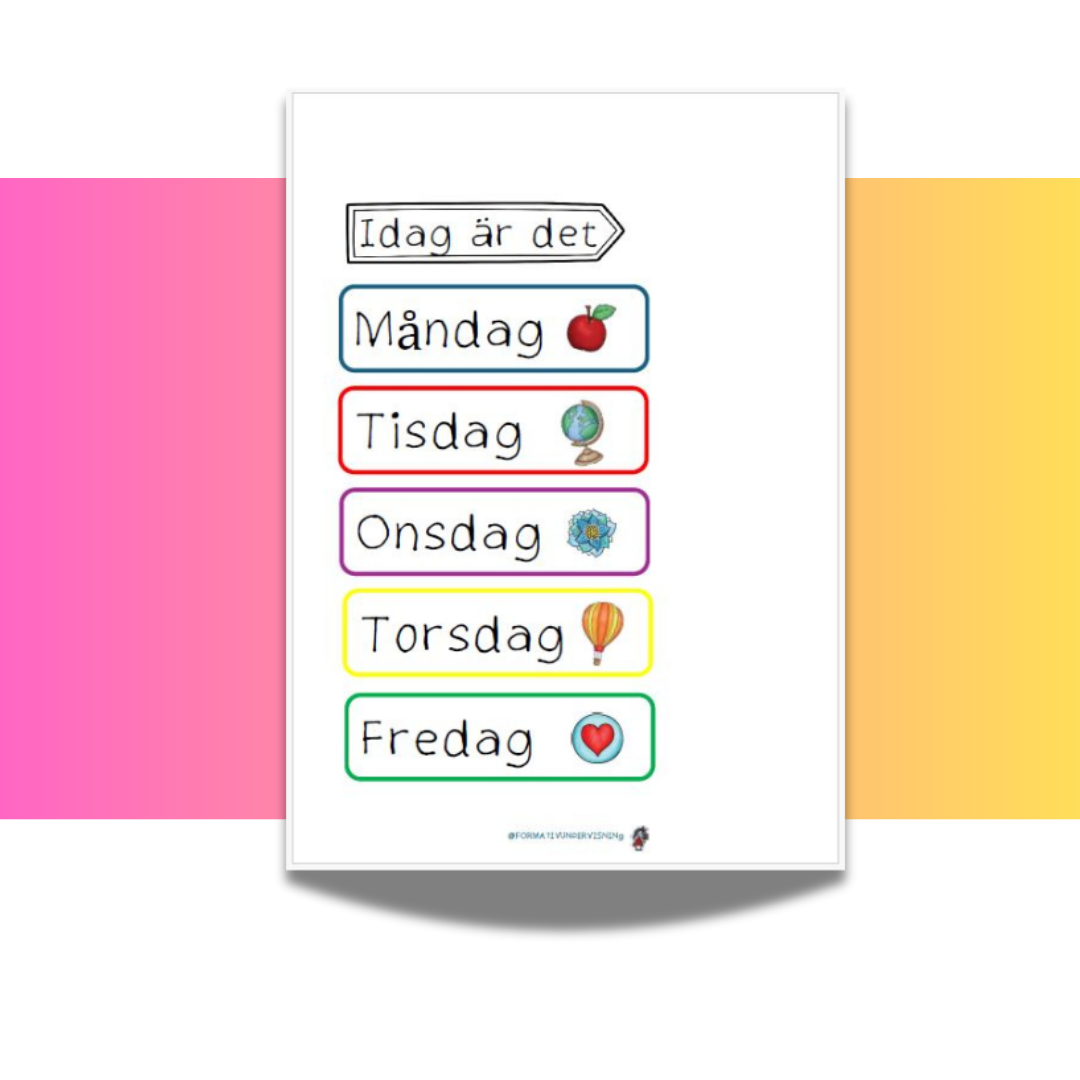 Veckoskyltar. Finns i två olika storlekar. Passar klassrummet och fritidshemmet.