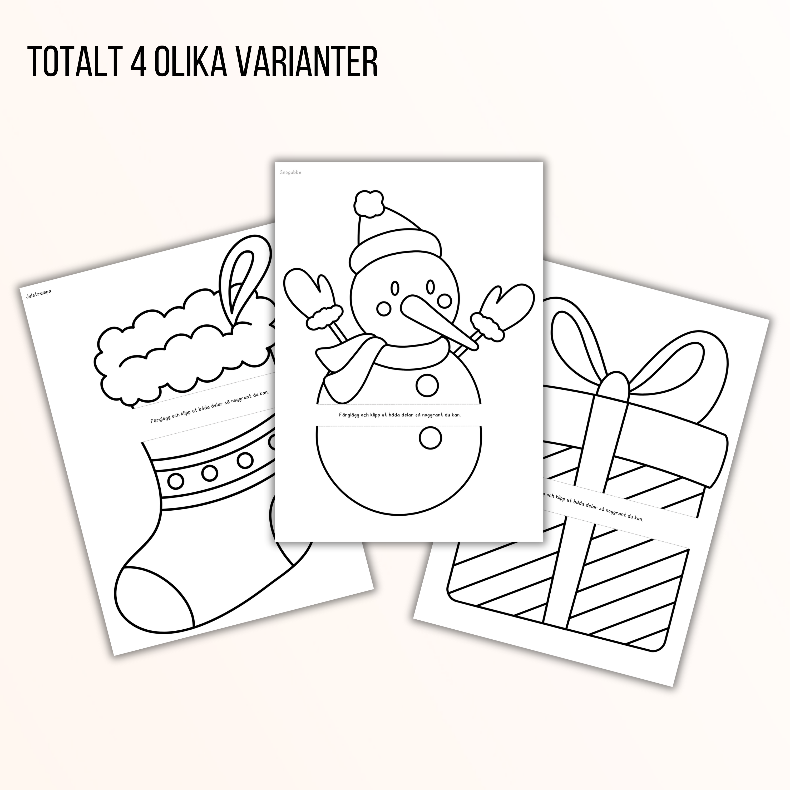 Mallar för vik-berättelser med jultema! Låt eleverna skriva berättelser, måla bilden, klippa ut och klistra ihop. Slutresultaten blir en fiffig utfällbar berättelse.