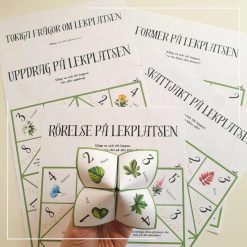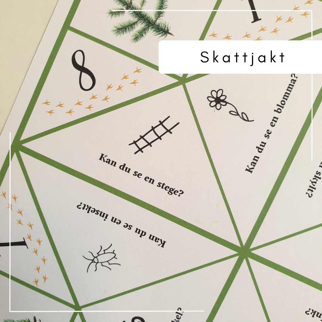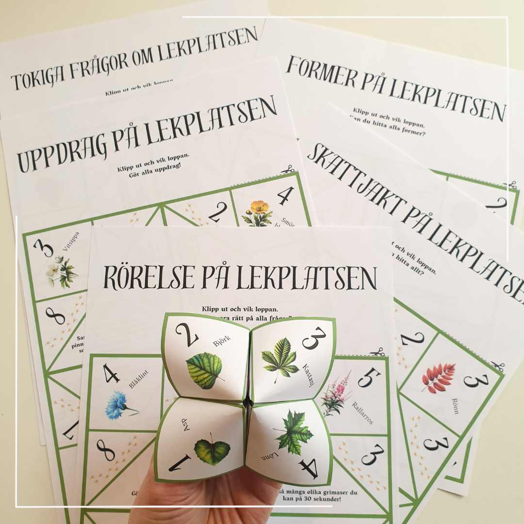 – Skattjakt: här uppmanas barnen att leta efter olika saker som brukar finnas på och vid lekplatser.