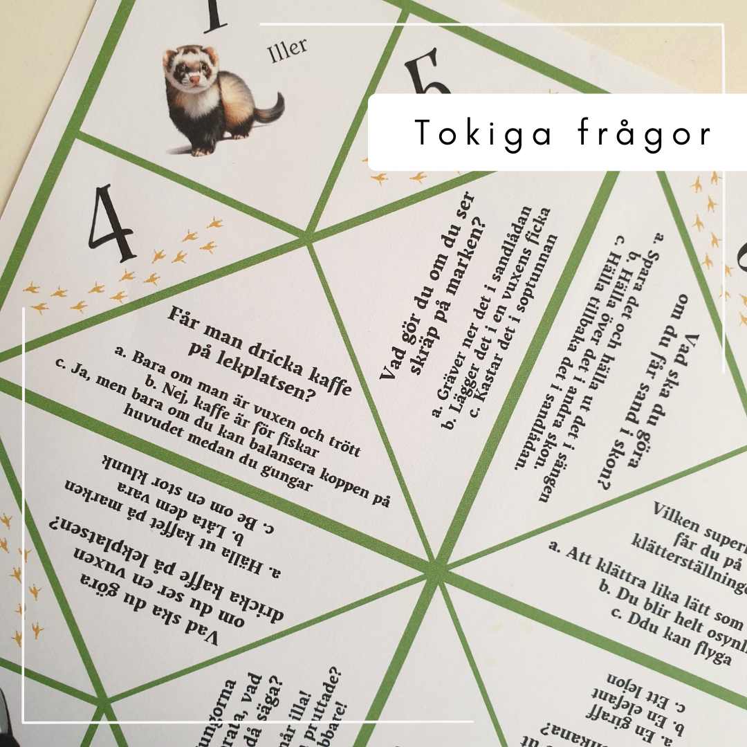 – Tokiga frågor: roliga frågor. Får man lov att dricka kaffe på lekplatsen? Vad gör man om man får sand i skorna? osv.