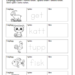 Ett stort häfte till vikariepärmen. Här finns 34 sidor med arbetsblad i olika ämnen. Spåra och skriva bokstäver och ord. Ordgömma, tärningsberättelse, subtraktionshjul, additionshjul, räknemåla, mandala m.m