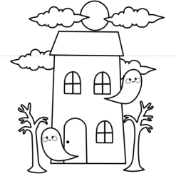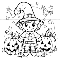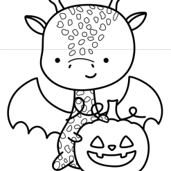Färglägg pumpan och motivet, vik därefter ihop vid de streckade linjerna så har du ett öppningsbart halloweenkort.