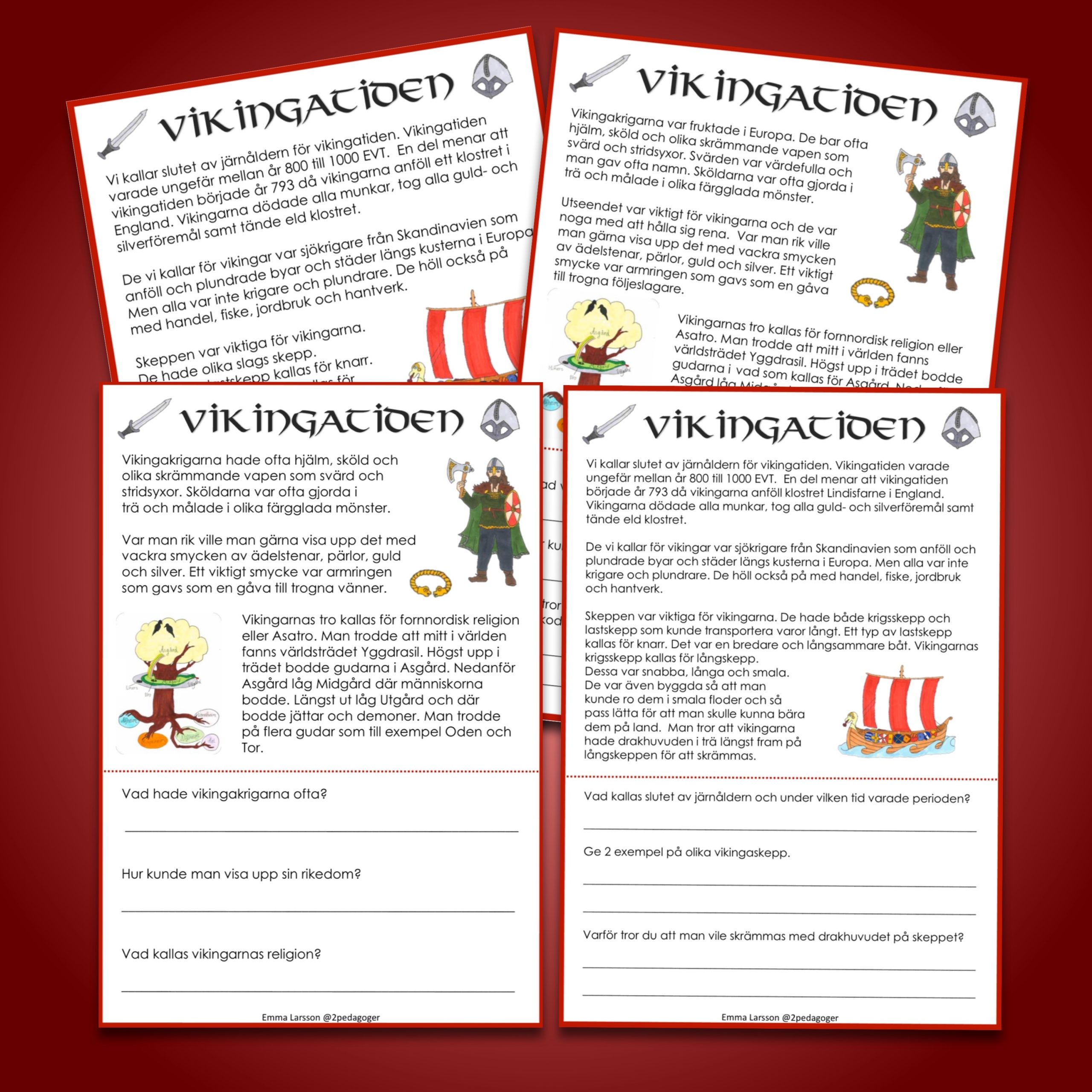 En läsförståelse på 2 sidor i 2 olika svårighetsgrader om vikingatiden!
